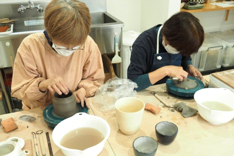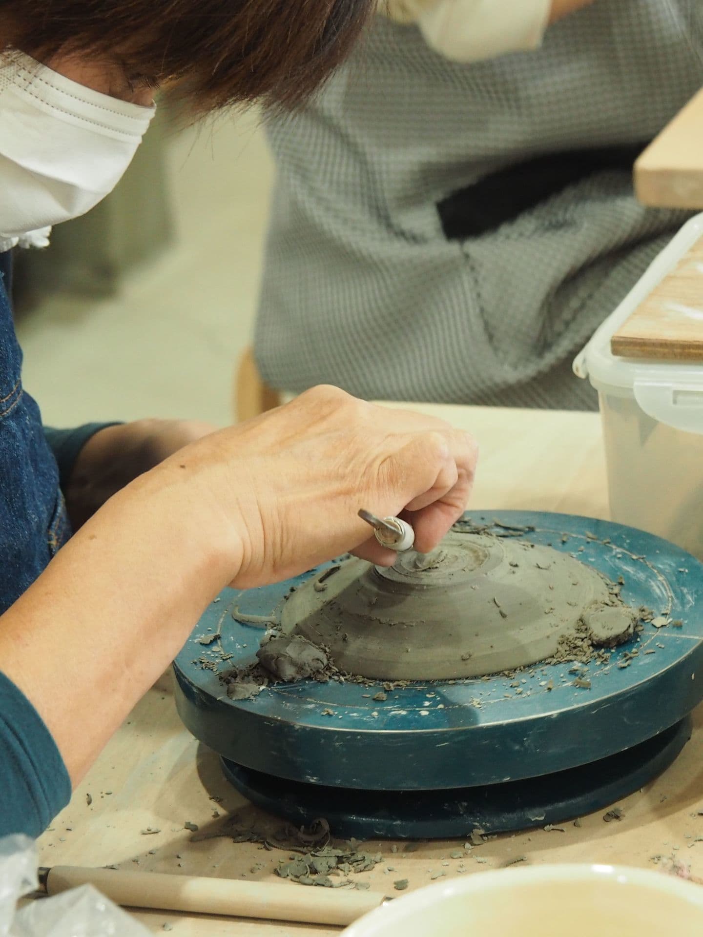 初めての方でも丁寧に指導いたします。手びねり・電動ロクロのスキルアップカリキュラムもご用意しておりますので、安心してご受講いただけます。