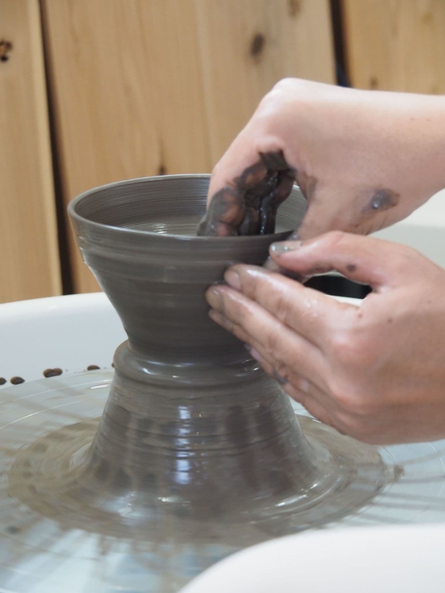 陶芸といえば電動ロクロ!憧れの電動ロクロを体験できるコースです。初めての方は多少難しいところもあるとは思いますが、丁寧な指導で素敵なうつわになるようサポートいたします。スルスルと粘土が形になっていく工程に夢中になってしまう方も多い技法です。湯飲み、ビアマグ、お茶碗、小鉢などが作れます。