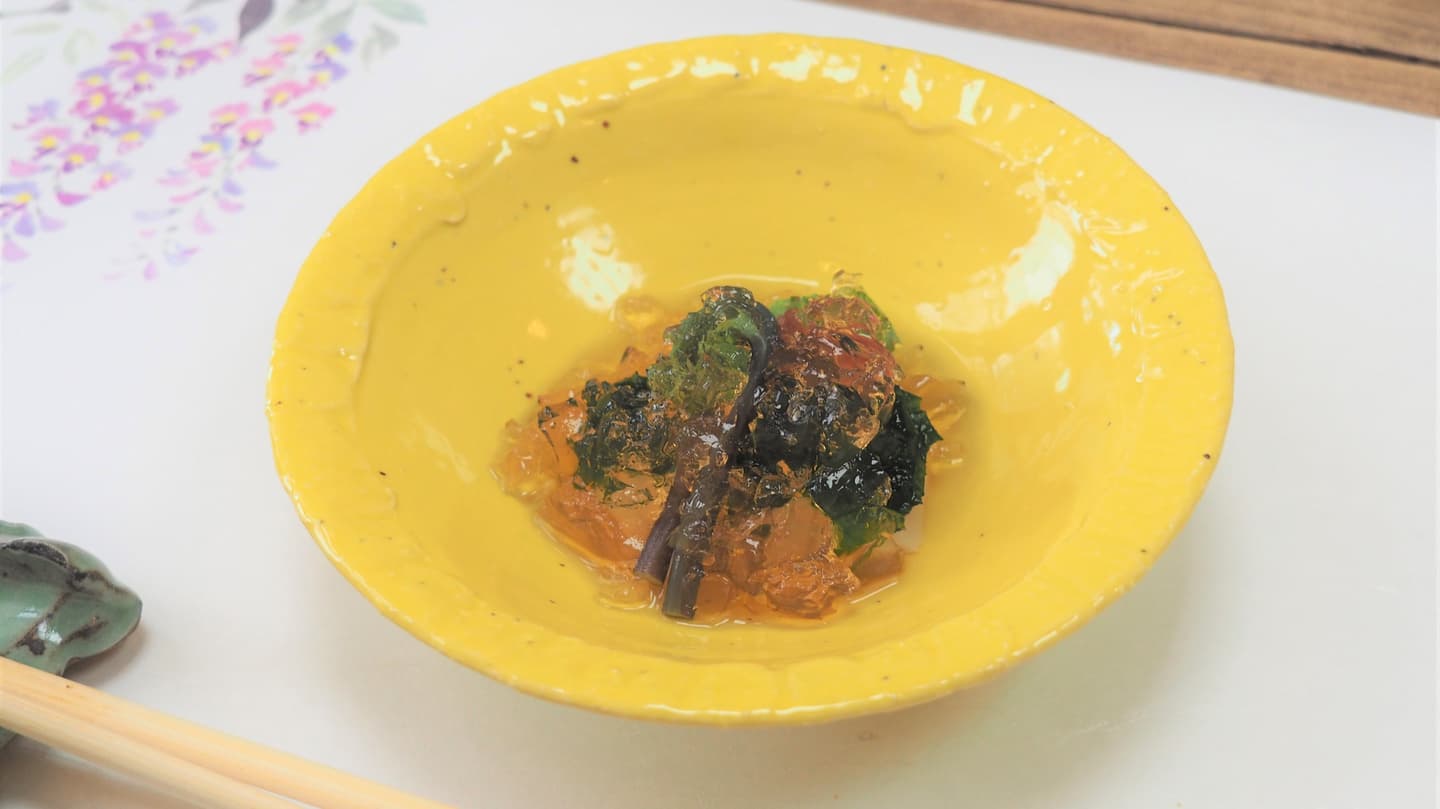 縁起が良く、料理映えのする鮮やかな黄色いうつわをご希望いただき、私なりに試行錯誤し楽しみながら制作させて頂きました。ご近所ということもあり、以前から美味しい和食の食べられるお店として、特別な日には家族で食事をした思い出深いお店です。そんなお店で自分の作品が活躍していると思うと感慨深いです。ご縁を下さった方々に大変感謝しております。