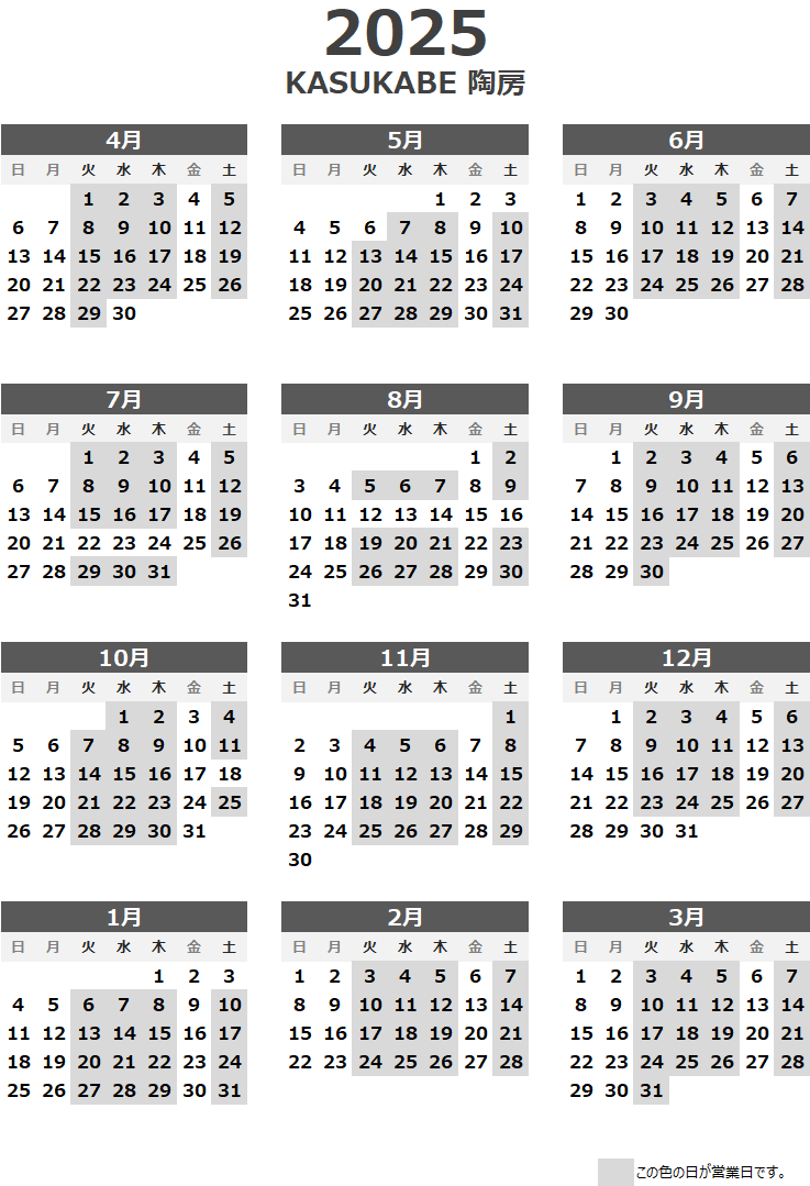 営業日カレンダー